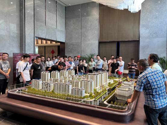 隨后,觀摩團一行參觀了天賦星辰項目售樓中心,在華麗大氣的銷售中心大廳沙盤區(qū)域,聽取了天賦星辰項目設計理念、區(qū)位優(yōu)勢、推進速度、政策優(yōu)惠等相關介紹。
