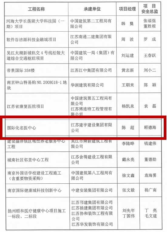 近日,中國建筑業(yè)協(xié)會(huì)安全與機(jī)械分會(huì)發(fā)布了2022年建設(shè)工程項(xiàng)目施工工地安全生產(chǎn)標(biāo)準(zhǔn)化學(xué)習(xí)交流項(xiàng)目名單,集團(tuán)南京分公司承建的國際化名醫(yī)中心項(xiàng)目安全標(biāo)準(zhǔn)化建設(shè)成績顯著,被授予“國家安全生產(chǎn)標(biāo)準(zhǔn)化項(xiàng)目”榮譽(yù)稱號(hào)(原國家AAA工地)。