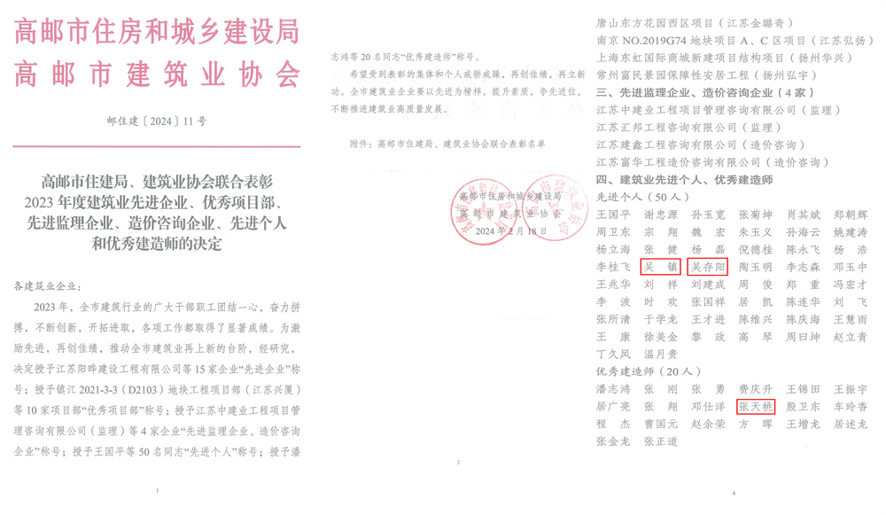 2023年,面對低迷的建筑市場,集團緊緊圍繞既定的戰(zhàn)略目標(biāo),攻堅克難、銳意進取。在經(jīng)濟指標(biāo)保持穩(wěn)定的同時,創(chuàng)優(yōu)奪牌捷報頻傳,轉(zhuǎn)型升級成效顯著。集團在高郵市納稅名列前茅,在揚州市納稅也取得了優(yōu)異的成績,為揚州和高郵地方經(jīng)濟發(fā)展做出了突出貢獻。