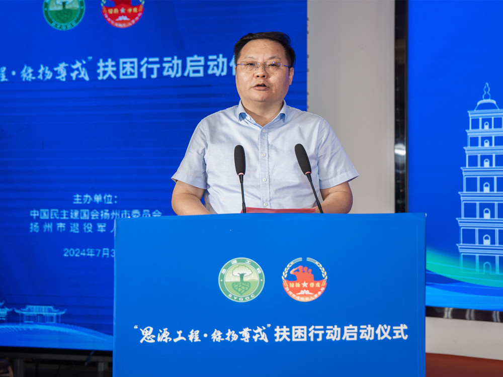 7月30日下午,由中國(guó)民主建國(guó)會(huì)揚(yáng)州市委員會(huì)、揚(yáng)州市退役軍人事務(wù)局聯(lián)合主辦的“思源工程·綠揚(yáng)尊戎”扶困行動(dòng)啟動(dòng)儀式在郵舉行。揚(yáng)州市委常委、統(tǒng)戰(zhàn)部部長(zhǎng)丁四海和高郵市委書(shū)記張利、民建揚(yáng)州市主委周啟泉等多位領(lǐng)導(dǎo)蒞臨現(xiàn)場(chǎng),共同見(jiàn)證這一公益盛事。集團(tuán)董事長(zhǎng)管民良作為民建高郵支部副主委及這項(xiàng)公益活動(dòng)的率先響應(yīng)企業(yè),應(yīng)邀出席活動(dòng)并發(fā)表了公益倡議。