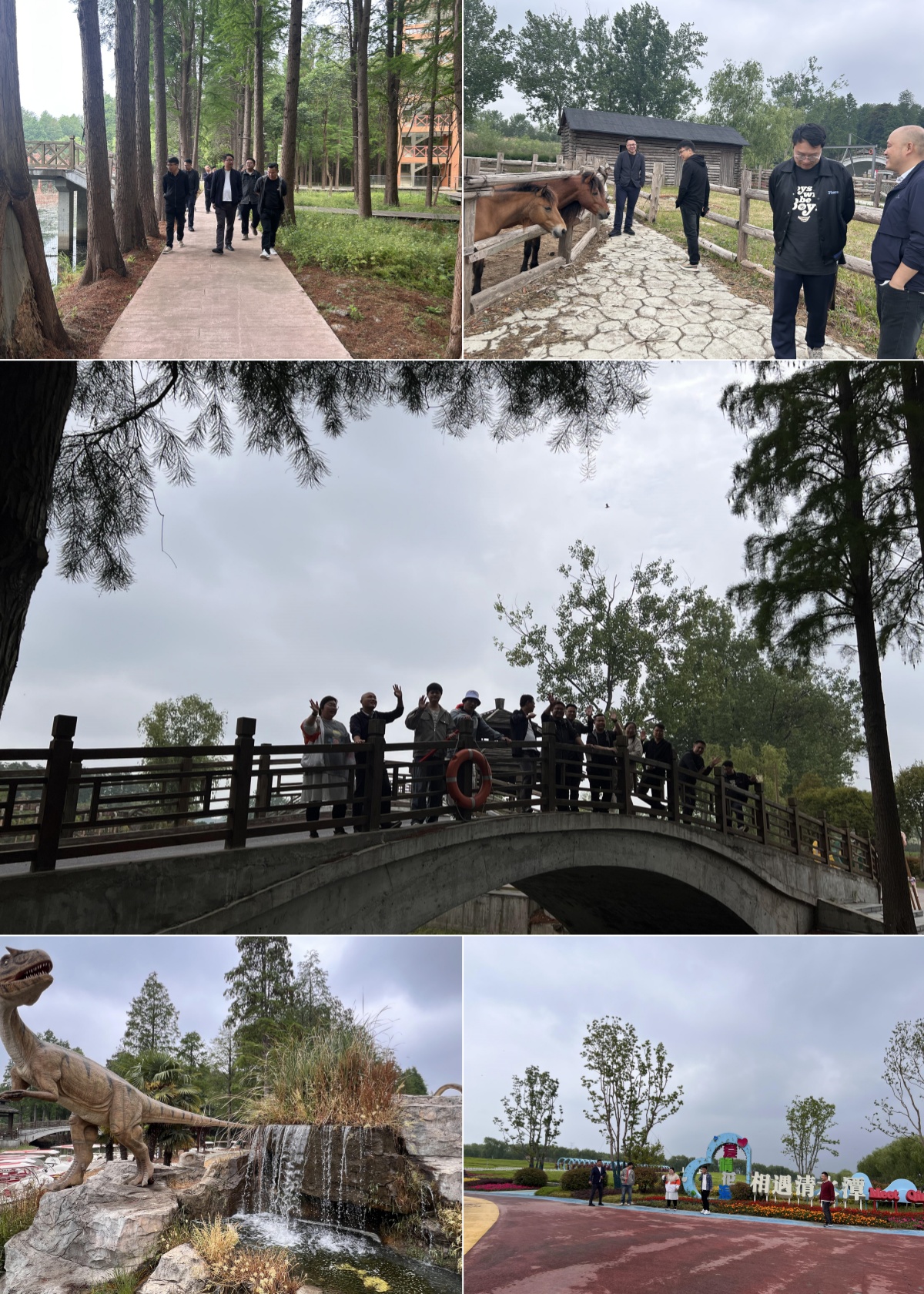 下船后,大家沿著公園蜿蜒曲折的小徑悠然漫步。小徑兩旁,繁花似錦,綠草如茵,仿佛是大自然精心繪制的一幅畫卷。途徑四季花海,更是美不勝收,不同顏色種類的花卉在此匯聚,綻放出各自獨特的魅力,讓人仿佛置身于花的海洋。大家時而駐足觀賞,用相機捕捉下夏日盛景中的每一個精彩瞬間;時而歡聲笑語,分享著彼此在工作與生活中的趣事。一場濕地徒步與自然觀察活動就此展開,大家仔細探尋著濕地中的每一處奇妙景觀,仿佛置身于一個充滿奧秘的生態(tài)課堂。行至小徑中段,揭陽塔映入眾人眼簾。大家難掩興奮,紛紛拾級而上,登高觀景。從塔頂下來后,不遠處便是“侏羅紀”主題區(qū)域。區(qū)域內一尊尊恐龍模型造型逼真、姿態(tài)各異,以獨特的方式向大家問好。離開“侏羅紀”區(qū)域,小型動物園出現(xiàn)在眼前。圍欄內,小矮馬、小羊和小兔子們正悠閑地吃著草,大家紛紛圍上前去,與小動物們展開互動。